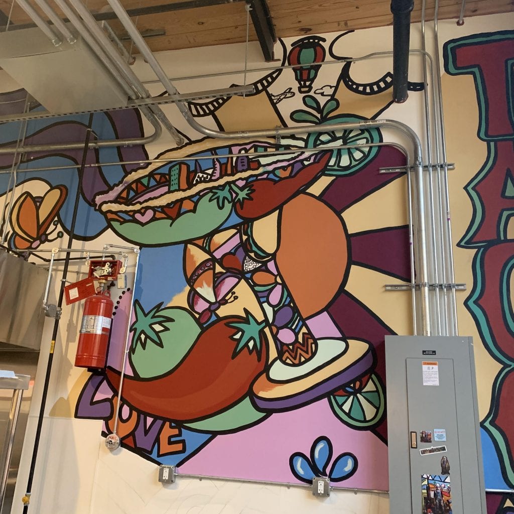 Andee’s marketing efforts revolve around networking and word of mouth. Her painting style and use of color fit well with her base clientele. She says, “I have a history with schools, and I have a lot of them currently reaching out to me. With Covid, schools are trying to figure out how to engage students safely. So I have a couple lined up to do work soon. I also love doing work with small businesses. They want you to show up on time and get the job done, and I have that same work ethic.”