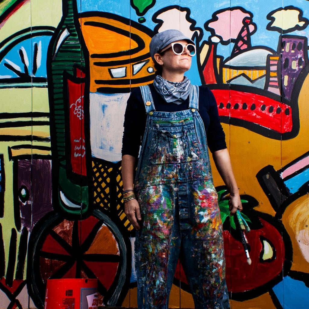 As a 5’3” tall muralist in Nashville, Andee Rudloff captures a big audience through her vibrant and unique style of painting. Her work is colorful and animated, much like the work of the late Keith Haring, one of her favorite artists. Just like Haring, Andee is imaginative, has a wonderful sense of humor, lacks prejudice, and enjoys collaborating with others.