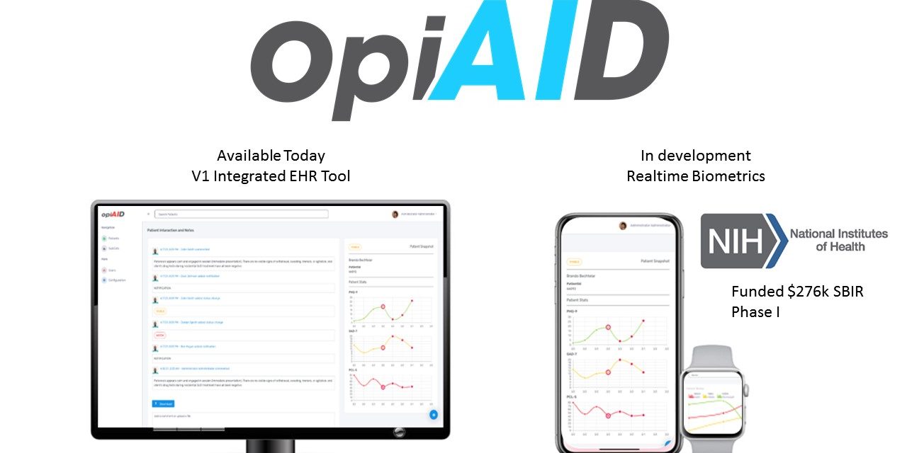 According to David, one may think of OpiAID as a voluntarily-enabled software for the treatment of substance use disorder. “Our tool integrates into the EHR [electronic health record] of the provider… So those who provide medically-assisted treatment, our software bolts onto their EHR and accesses—almost like a Google analytics, if you will—extracting data and taking that data out of the EHR and creating an interpreted data that plots the scores and metrics over time. So it basically pulls out the things that we know that are important—like clinical assessments and biometric data—other data points and plots it over time.”